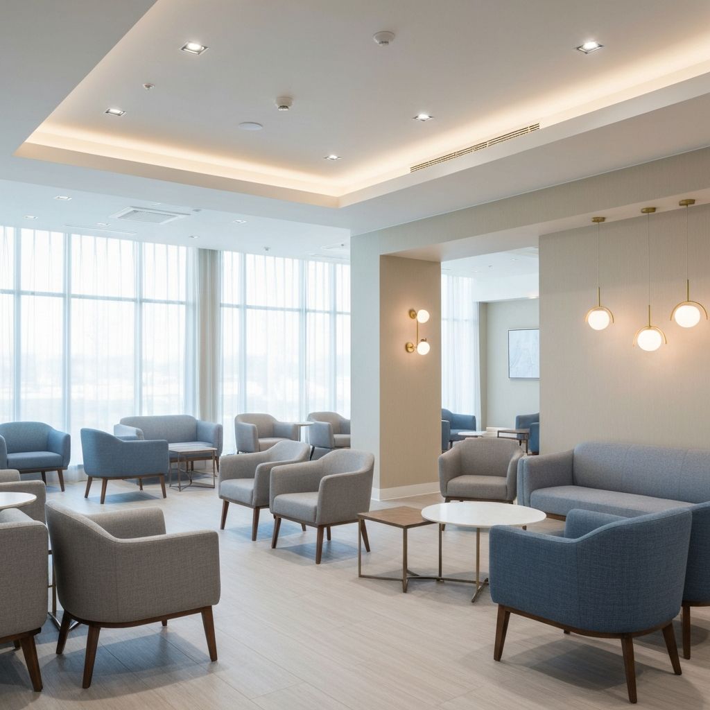 VIP-залы, бизнес-лаунжи и общие зоны ожидания. Сертифицированные материалы для транспортной инфраструктуры.