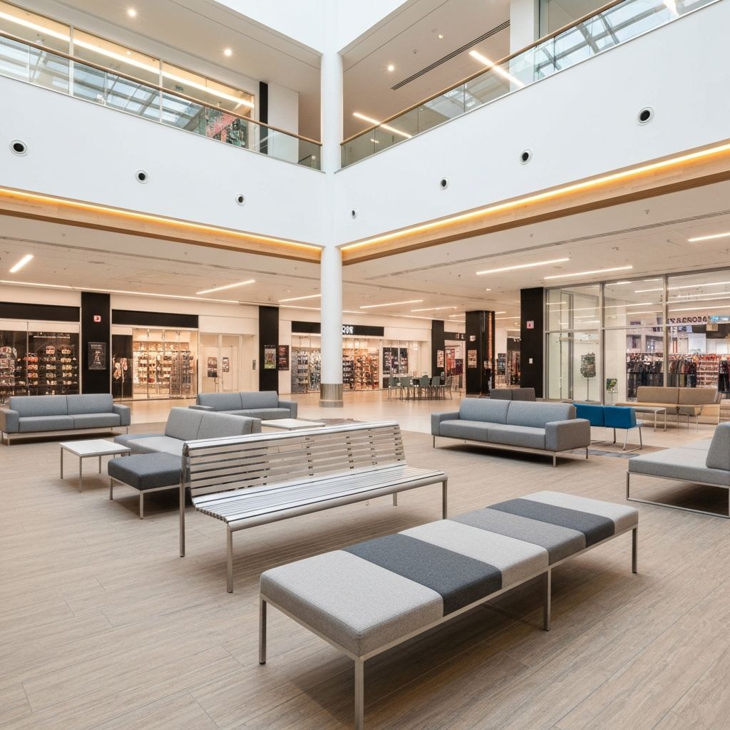 Зоны отдыха, фуд-корты и общественные пространства. Антивандальные решения с высокой износостойкостью.